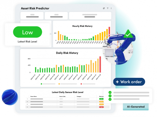 Fiix Asset Risk Predictorは、AIを活用した予知保全と生成AIによる実行可能な作業指示を組み合わせることで、製造企業のお客様が可能な限り短時間で結果を出せるようにしています。