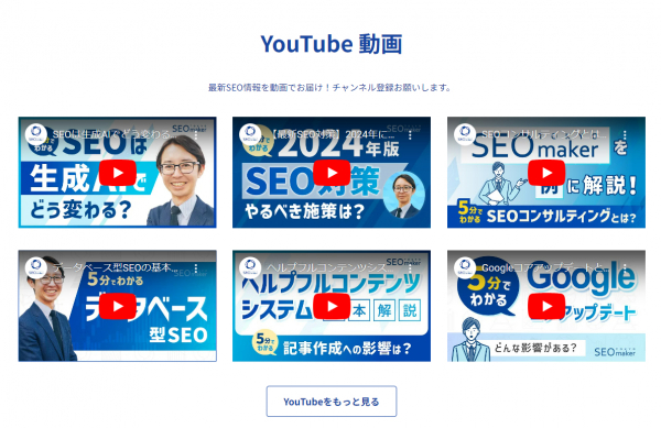 SEO専門会社の東京SEOメーカーのチャンネルで、5分でわかるようにSEOに関するテーマを配信しています。