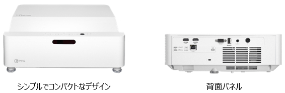 WXGA(1280×800ドット)解像度のDMDチップを搭載し、明るさ3,200ルーメン、コントラスト比300,000:1の投写画像はシャープで精細感のある鮮明な映像を再現します。15Wモノラルスピーカーを内蔵。超短焦点プロジェクターは視聴者に対し正面から音声が出力されますので、違和感のない視聴が可能です。