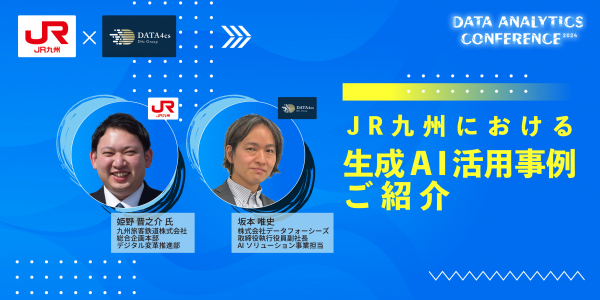 過去2年間に渡りデータフォーシーズがご支援させていただいている九州旅客鉄道様。これまでのご支援実績とその成果、そして今後生成AIがもたらす業界への変化について、セッション形式で解説しております。分析チームの構成や生成AI活用に向けたアクションなど具体的に話しているのでご参考にしていただければ幸いです。