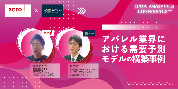 アパレル業界での「どのような商品が、いつ、どのくらい売れるのか」という問いに対し、データフォーシーズ様とのプロジェクトを通じて需要予測モデルを構築しました。その過程や精度を向上させるポイントに加え、現在社内で運用中の手法も含めてご紹介いたします。