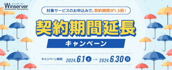 Winserver(ウィンサーバー/運営会社:アシストアップ株式会社、所在地:大阪府大阪市、代表取締役:青木 勝彦)は、2024年6月1日(土)~6月30日(日)の期間、契約期間延長キャンペーンを実施いたします。