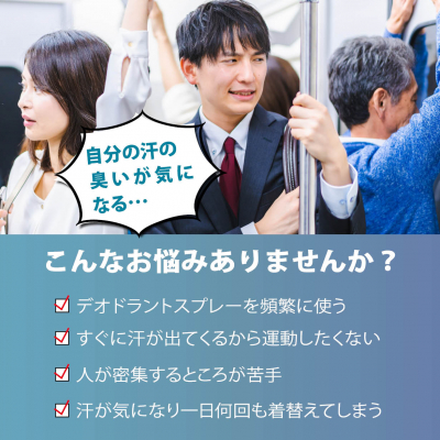こんなお悩みはありませんか?これからの季節、毎日汗をかき臭いが気になる。ついつい臭いが気になって行動をセーブしてしまう。