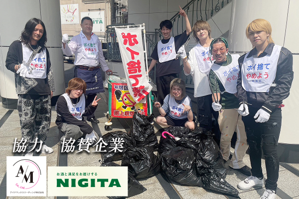 第一回ということで、参加人数は小ぶりだったものの、天候にも恵まれ、たばこの吸い殻や、ペットボトル、傘など70Lごみ袋5個分のポイ捨てごみを回収。
