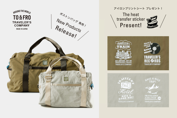 また、ボストンバッグの発売とアイロンプリントシールのプレゼントは、「TRAVELER’S COMPANY」の直営店、トラベラーズファクトリー中目黒、ステーション(東京駅)、エアポート(成田空港)、京都でも実施します。