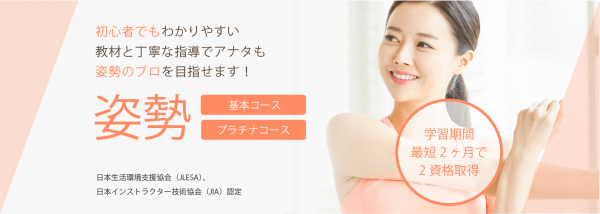 姿勢基本コース/プラチナコースでは、テキストに沿って学習できるので初心者の方でも問題なく学ぶ事ができ、人気の講座となっています。