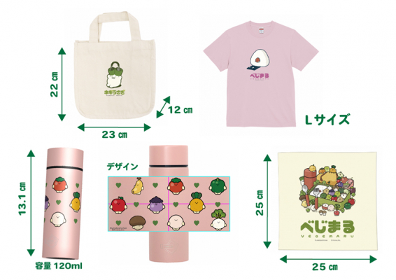 また、上位ライバーには賞品として、べじまるオリジナルグッズをプレゼント。トートバッグ、Tシャツ、ポケットボトル、ミニハンカチタオルもプレゼントします!