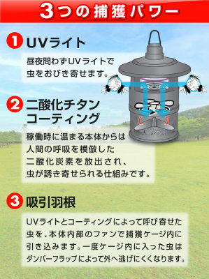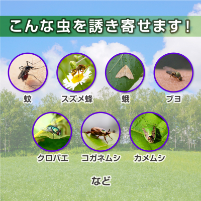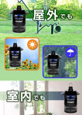 夏から秋にかけて多く飛び交う蚊や蛾を、置くだけで捕獲します。全天候型対応のため庭や軒先で、1シーズンを通してご利用いただけます。