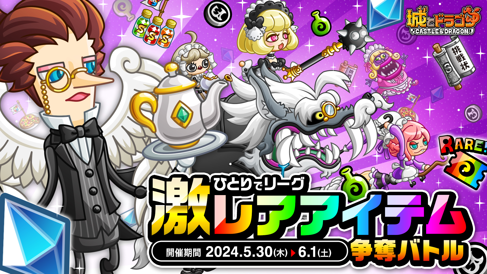 株式会社アソビズム(本社:東京都千代田区、代表取締役:大手智之)は、App Store・Google Playにて好評配信中の『城とドラゴン』で、2024年5月30日(木)より「ひとりでリーグ激レアアイテム争奪バトル」を開催いたします。