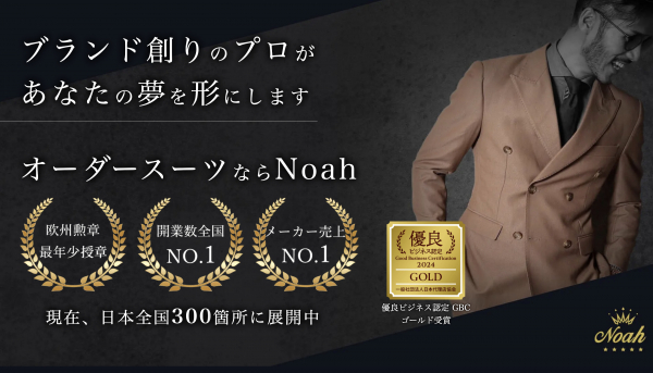 オーダースーツNoah300店舗達成を記念した特別コラボ企画としてフランチャイズ特別プラン加盟の方に