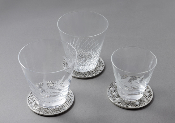 夏の日差しを集めてキラキラと輝く、クールなカッティングや夏の風物詩シダが描かれた江戸切子のグラスをはじめ、熟練の技によって繊細な紋様が施されたスタイリッシュなステンレスのコースターやカトラリーレストなど、夏の涼を五感でお楽しみいただけるテーブルウェアの共演です。