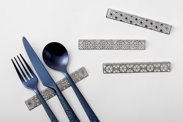 また、ステンレスを微細加工した、繊細なカトラリーレストや箸置きも。綿密で精工な佇まいは、まるで美しい工芸品。食卓を洗練されたワンランク上のテーブルコーディネートに彩ってくれることでしょう。