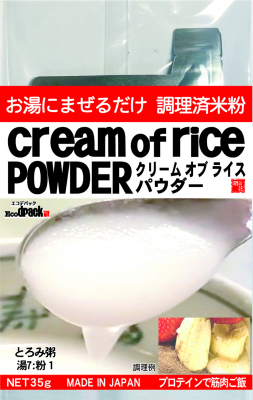 シリアルや、パン、ライスに代わる朝食として、海外のアスリートに人気の、グルテンフリーの、クリームオブライスと比較して、調理済みの為、電子レンジが不要で、お湯に混ぜるだけですぐに食べられます。