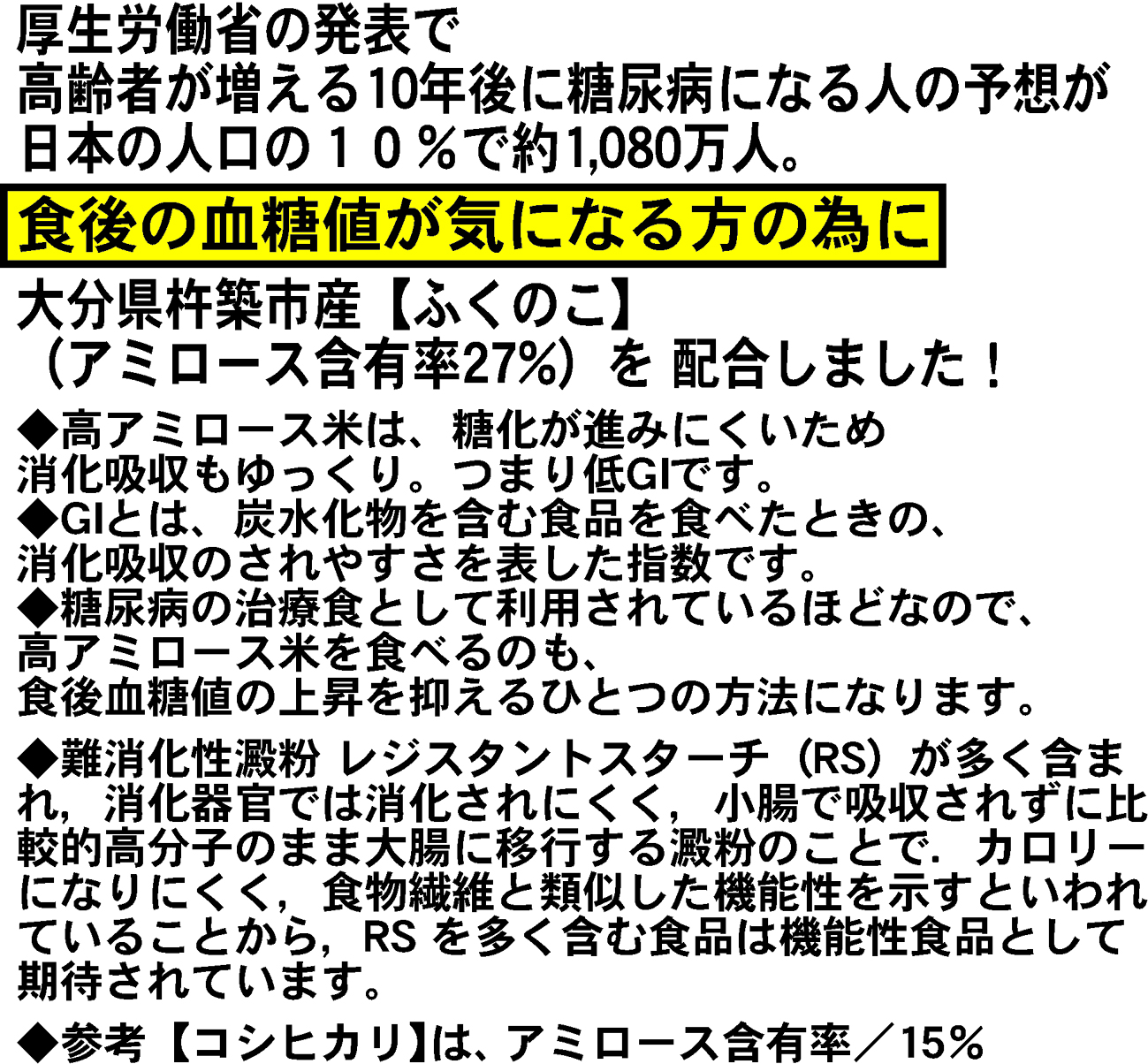 【クリームオブライスパウダー明日花】は、従来の生の米粉や、炊飯後、高温乾燥して粉砕した米粉とは異なり、血糖値が上がりにくいとされ、糖尿病対策米の、高アミロース米を使用した特殊調理済米粉です。