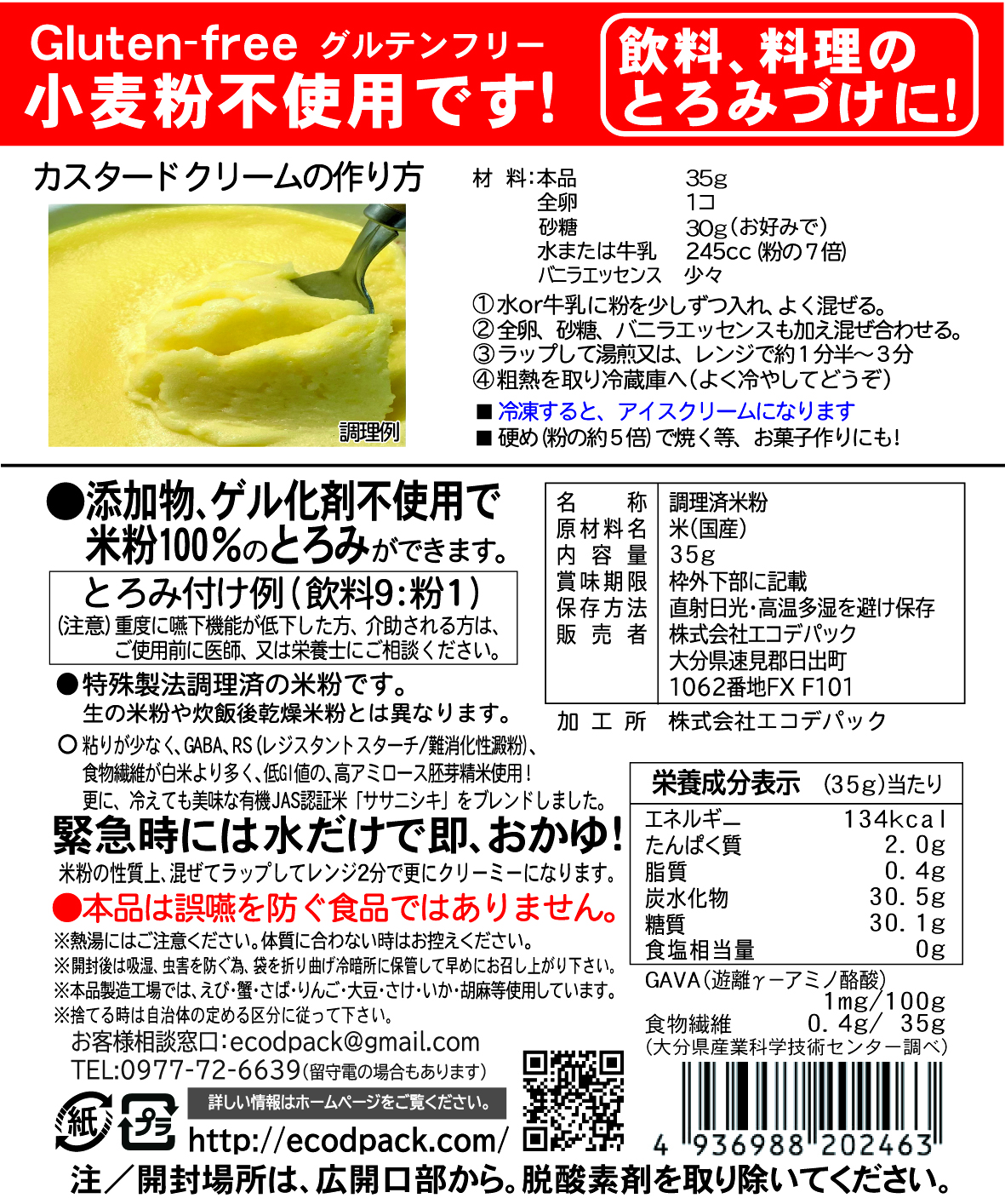 4.小麦粉代用の、とろみ付けや、カスタードクリーム、チーズケーキ等に利用できます。