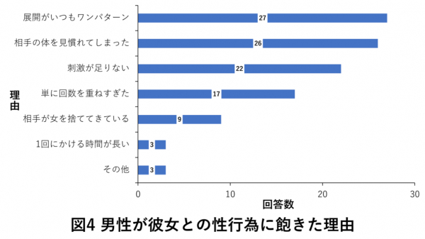 男性が彼女との性行為に飽きた理由について対象者に回答を求めました。