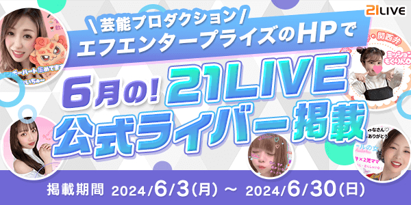 本日より、6月の21LIVE公式ライバーをエフエンタープライズのホームページで紹介しています。