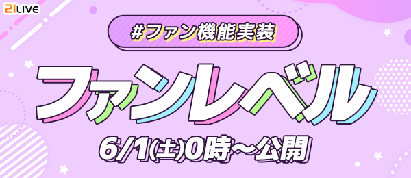 株式会社エムアンドティーティー(本社:沖縄県北谷町、代表取締役:井藤 三知子)が運営するエンターテイメント・ライブ配信アプリ【21LIVE(ニーイチライブ)】URL: https://21.live では、6月1日(土)より新機能を追加。ライバーへの応援度合いが分かる『ファンレベル』を実装しました。