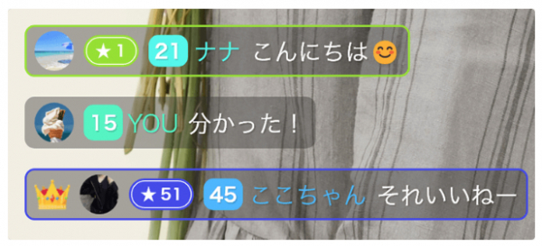 ファンレベル1以上になるとコメント欄に枠線がつくので、ライバーへのコメントがより目立つようになります!