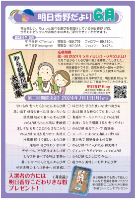 和菓子専科・明日香野が毎月発行している広報誌「明日香野だより」は、明日香野とお取引いただいている関係者様にその時期にあった明日香野関係のニュースをお知らせしています。