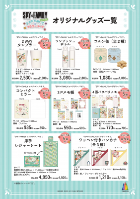 イベント開始の4月20日(土)より、第1弾として全15アイテムのオリジナルコラボグッズを販売しております。今回のコラボイベントのために新たに描き下ろされたフォ―ジャー家たちがデザインされたアクリルスタンドや缶バッジなどに加え、プリントクッキーや瓦せんべいなど、『SPY×FAMILY』の世界を満喫した思い出としてピッタリの商品が並びます。オリジナルグッズを2000円以上お買い上げいただいたお客様には、オリジナルクリアカード(ランダム/全8種)をプレゼントいたします。