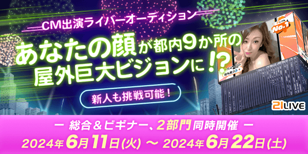 21LIVEの顔として有名になりたいライバーは、今すぐ「CM出演ライバーオーディション」にエントリーしてくださいね!