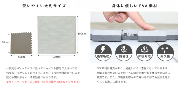 また、厚みも十分にあり衝撃吸収性、防音性、耐久性などにも優れています。