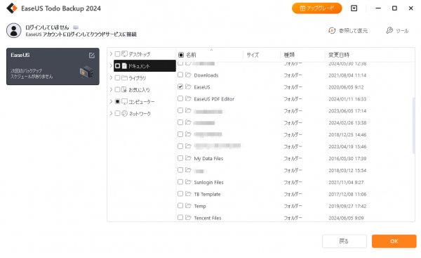 ステップ2.ファイルのバックアップをクリックして、バックアップを取りたいファイルをチェックします。「OK」ボタンを押して次に行きます。