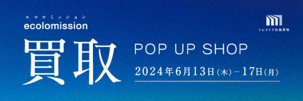 そごう千葉店にて、全国にグループで280店舗以上を展開するリユース企業のトレジャー・ファクトリーが、総合リユース買取ポップアップショップ「ecolomission[エコロミッション※]」を開催いたします。買い取り対象アイテムは、洋服・シューズ・ブランドバッグ・ブランド食器・香水・ウイスキー・ブランデー・ゴルフ用品・カメラ・ホビーなど幅広く取り扱い、買い取り金額は、そごう・西武で使える商品券で支払われます。