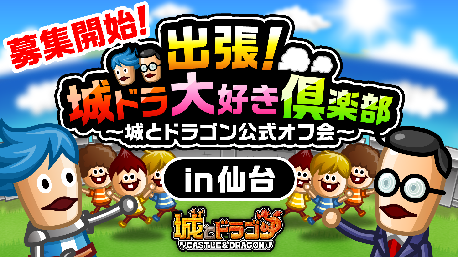 「城ドラ大好き倶楽部」でお馴染み、さねしげと西くぼアナが全国6ヶ所を巡る公式オフラインイベント『出張!城ドラ大好き倶楽部~城とドラゴン公式オフ会~』の第3弾を、8月10(土)に宮城県・仙台駅付近の会場にて開催いたします。開催に先駆け、6月6日(木)よりイベントの参加メンバーを募集中!奮ってご応募ください!