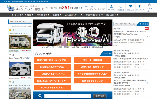 「キャンピングカー比較ナビ」では、登録されている850台以上のキャンピングカーから2024年5月における閲覧数が上位のキャンピングカーランキングを集計しました。