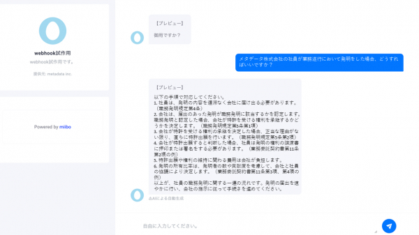■miibo、DifyにAPIモードのChatBridを組み込んで一体化した画面例