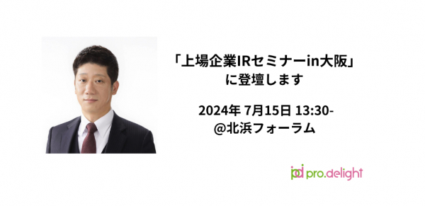 電話のDXを推進する株式会社プロディライト(大阪府大阪市:代表取締役社長 小南 秀光、証券コード:5580、以下プロディライト)は、2024年7月15日に開催される「上場企業IRセミナーin大阪(主催:株式会社イベントス)に登壇します。