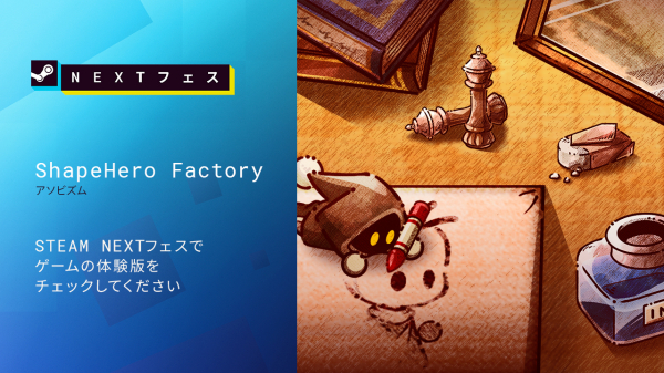 株式会社アソビズム(本社:東京都千代田区、代表取締役:大手智之)は、Steam向けゲーム最新作『ShapeHero Factory』(シェイプヒーローファクトリー)が、6月10日(PT)からSteamにて行われる近日登場予定のゲームの祭典「Seam Nextフェス」への参加が決定しましたことをお知らせいたします。