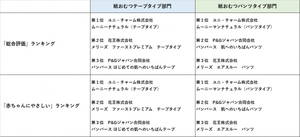 2. 「赤ちゃんにやさしい」ランキングは、実施したアンケート内の「赤ちゃんのことが考えられている」等の項目得点が高かった製品に授与