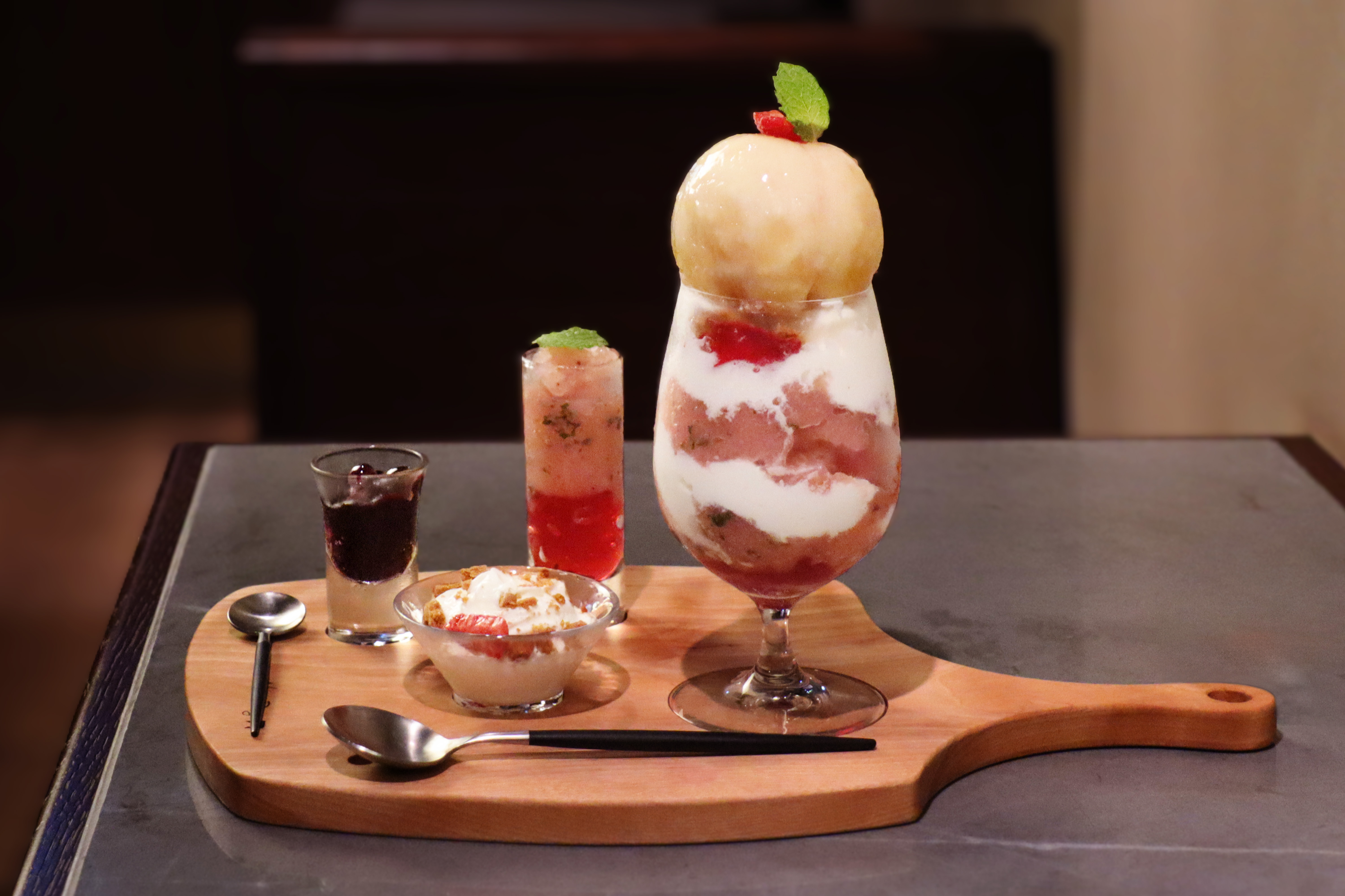 また、マスカルポーネイチゴアイスとブラッドオレンジソルベが、コクと優しい酸味をプラスし、桃の甘さを引き立ててくれます。