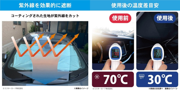 ミスターカード株式会社(本社所在地:埼玉県川口市)は、デジタルミラー、ドライブレコーダー、車載カメラの熱対策として、スリット&ミラー固定用ヒモが付いた折り畳み傘式サンシェード「CarUB V3(2024)」を2024年6月14日(金)から発売します。