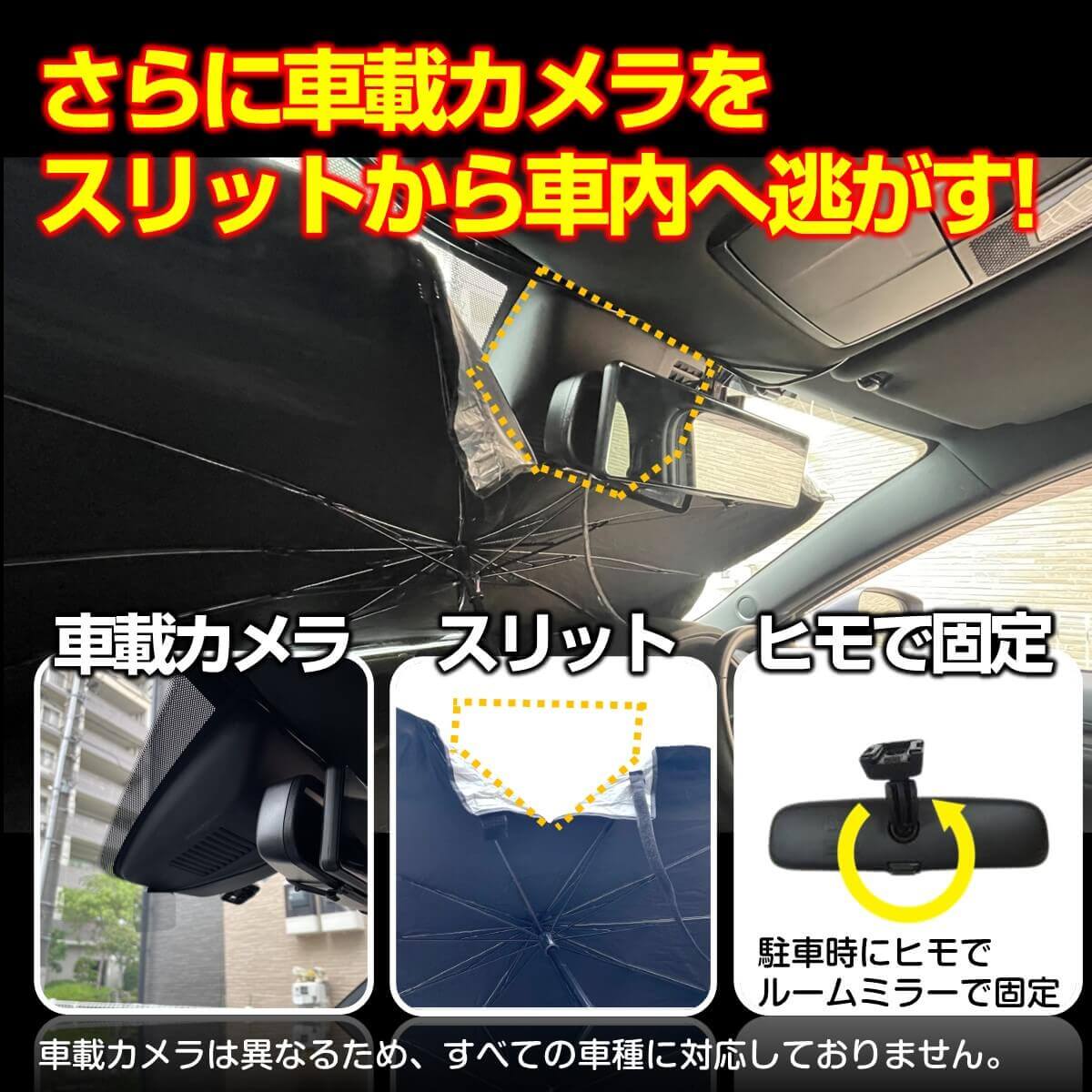 ※ドライブレコーダーやカメラの取り付け位置によってスリットは対応できない場合がありますので、お客様自身で工夫してご使用ください。