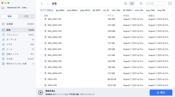 強力なデータ復旧エンジンで高い復元率に達成するデータ復元ソフトとして、誤削除、フォーマットやパーティション紛失などMacのあらゆるシチュエーションに対応でき、極めて簡単な3ステップでデータを復元できます。そして、SDカードデータ復元、USBメモリ復元、外付けHDD復元およびゴミ箱復元などにも完璧に対応できます。