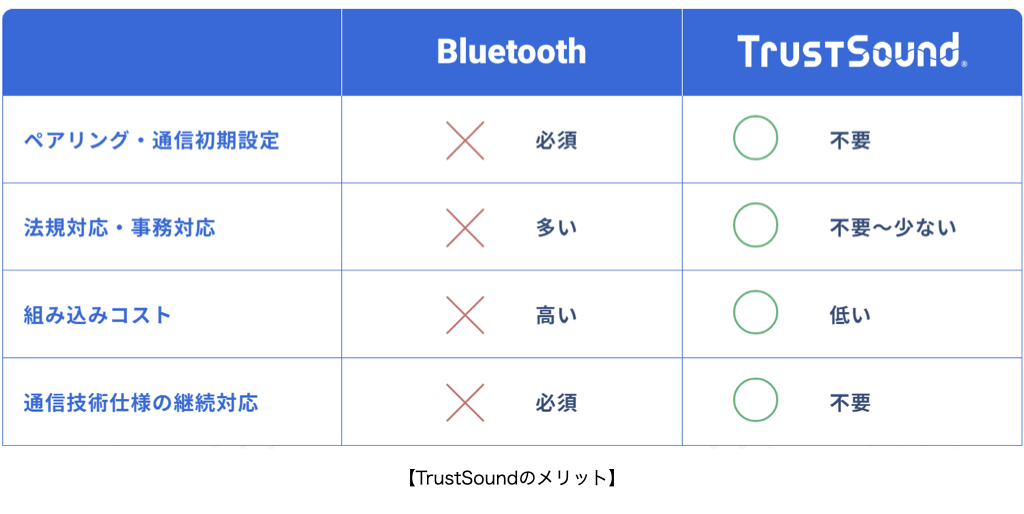 ・音を再生する・聞き取るだけで通信が完了するため、機器の通信接続設定等が不要