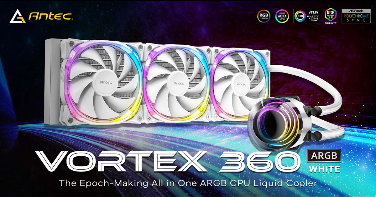 株式会社リンクスインターナショナル(本社:東京都千代田区、代表取締役:川島義之)は、渦をモチーフにした独特なデザインのポンプヘッドでユニークなイルミネーションと、高い冷却性能を実現したARGB LEDファン搭載水冷一体型ユニットAntec Vortex 360 ARGB Whiteを2024年6月22日より、全国の家電量販店、PCパーツ専門店、各種EC販売店にて発売いたします。