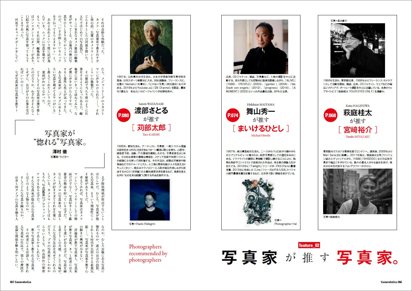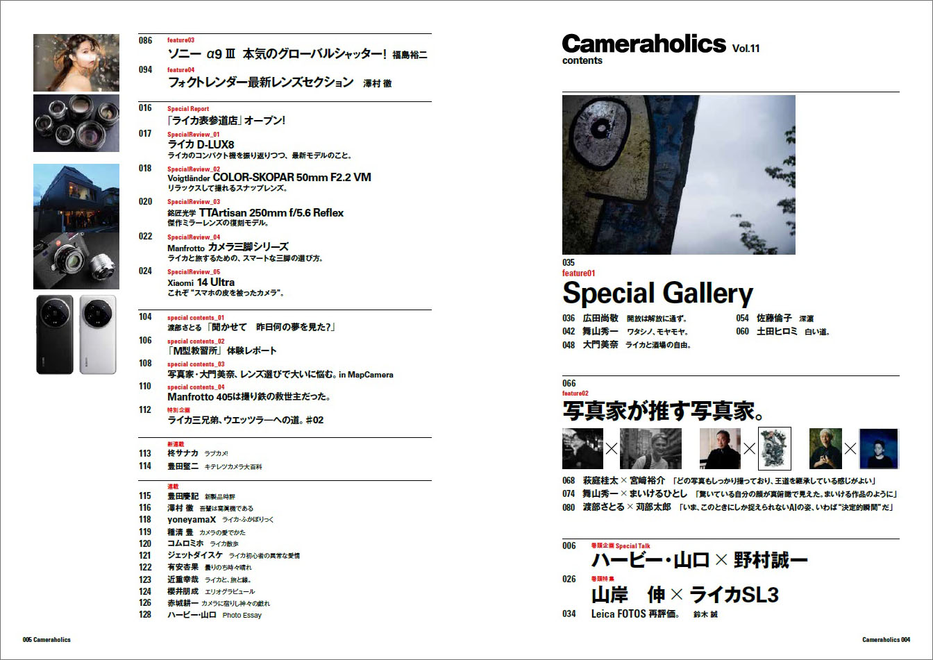 本誌常連写真家がいま注目する写真家にスポットを当てた特集「写真家が推す写真家」に加え、写真界のレジェンド対談「ハービー・山口 × 野村誠一」、写真家・山岸伸による注目のライカ新製品「ライカSL3」の撮り下ろし企画など、これまで以上に充実した内容です。