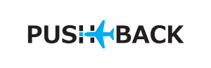 バッグ裏面に「PUSH BACK」のロゴを配置。トーイングカーと飛行機のシルエットにアルファベットを組み合わせたオリジナルデザインです。