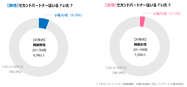 ・ セカンドパートナーは現在、既婚者以外の独身カップルにも広がっている様子ですが、今回の調査は本来の意味に則して対象を既婚者に限定しました。
