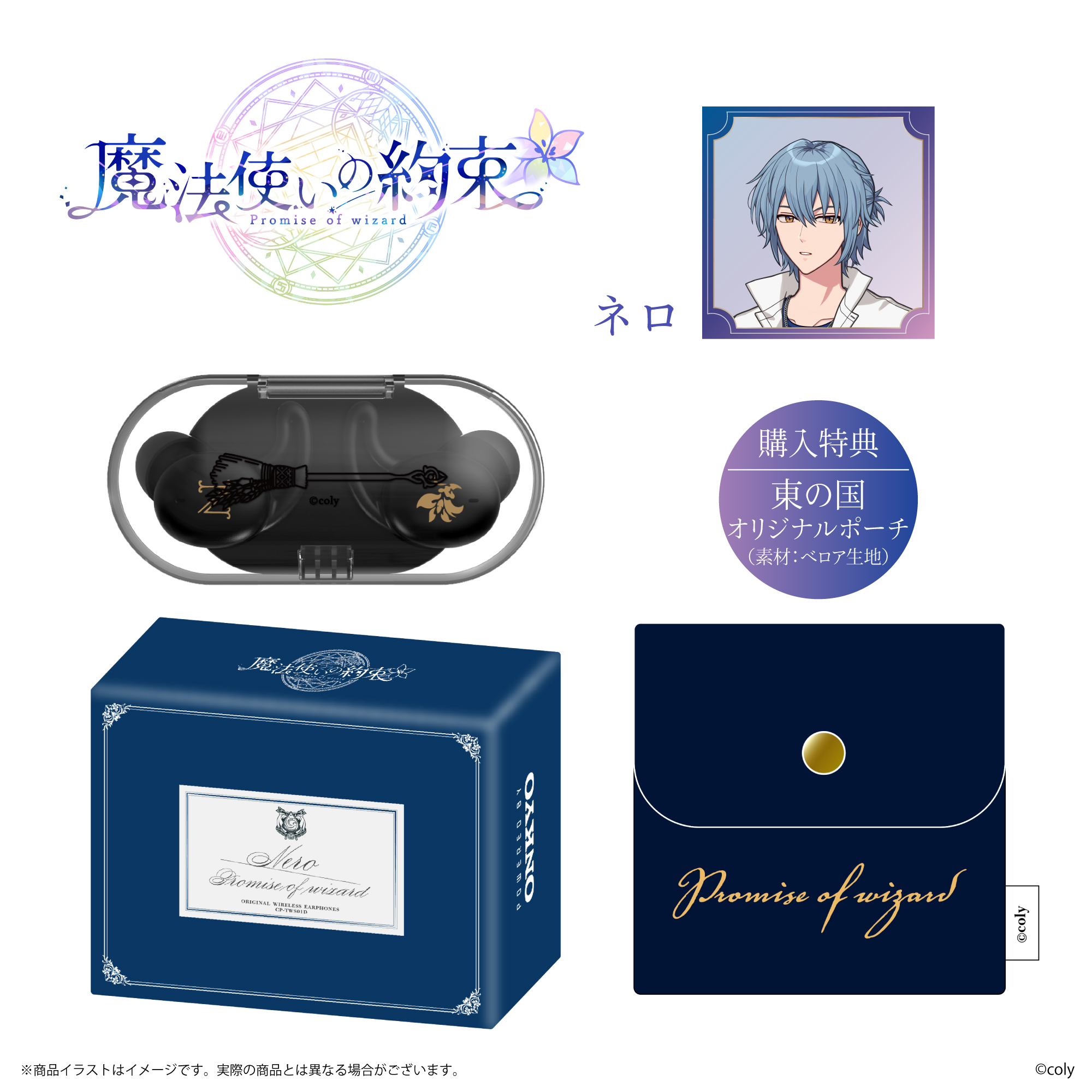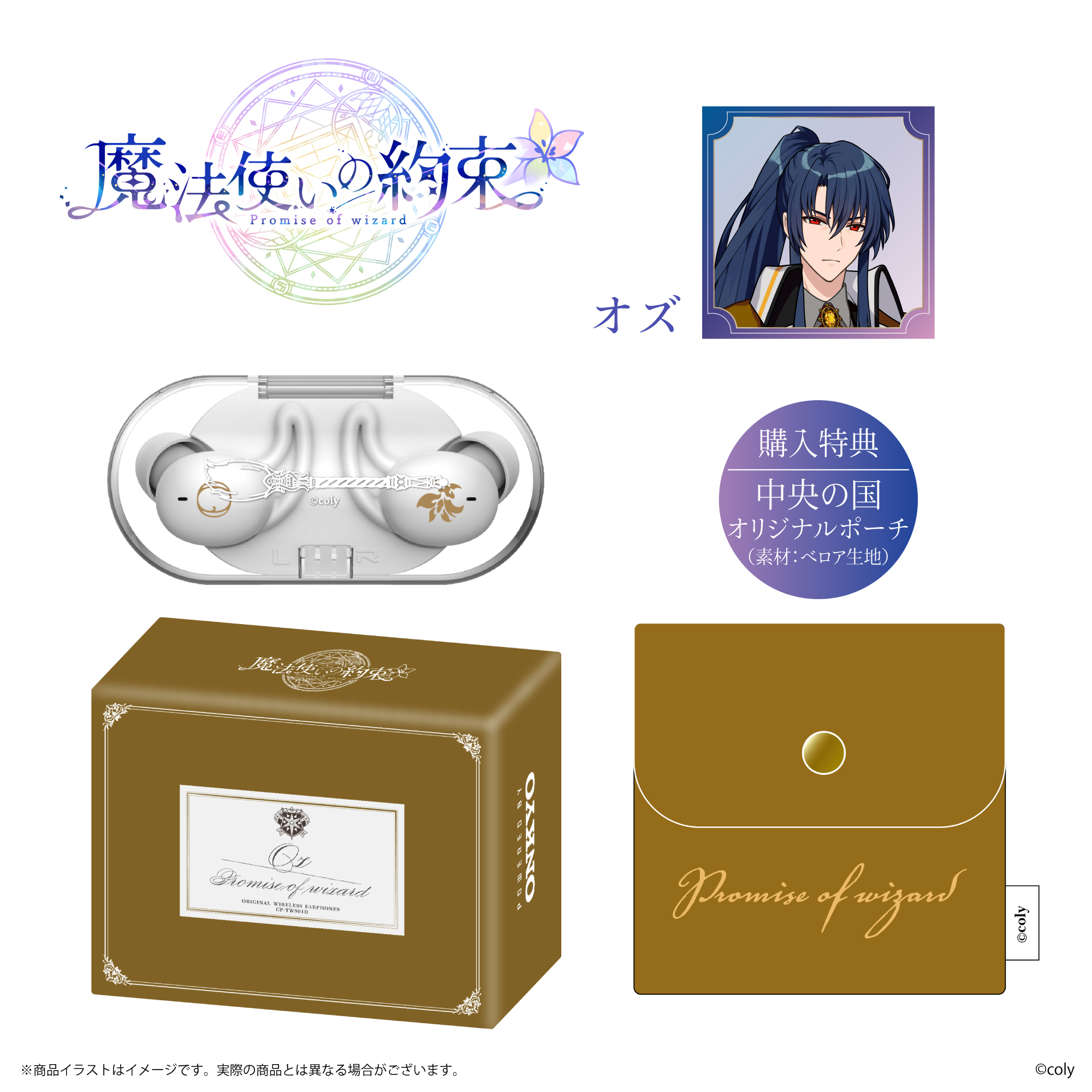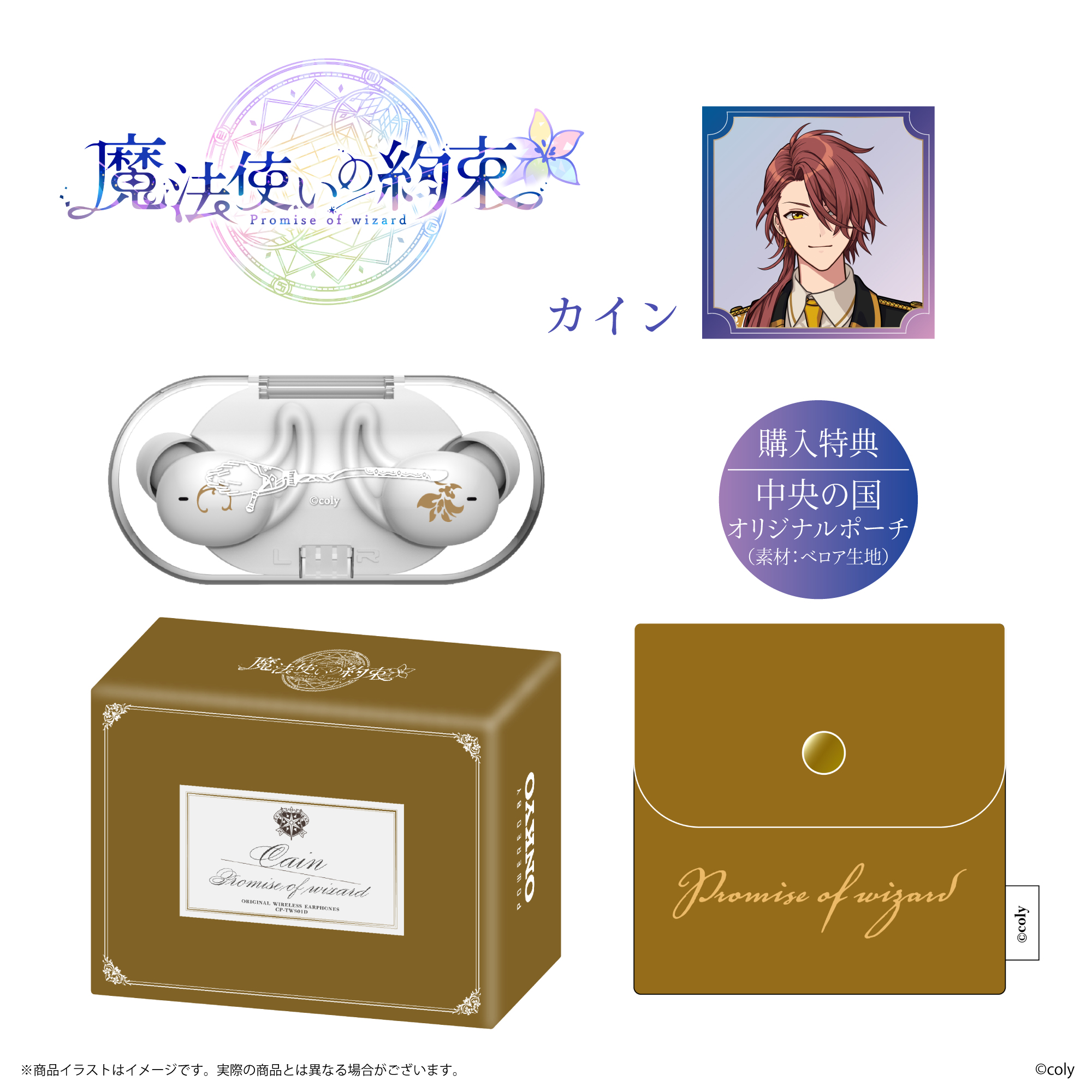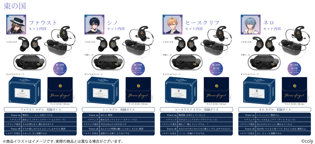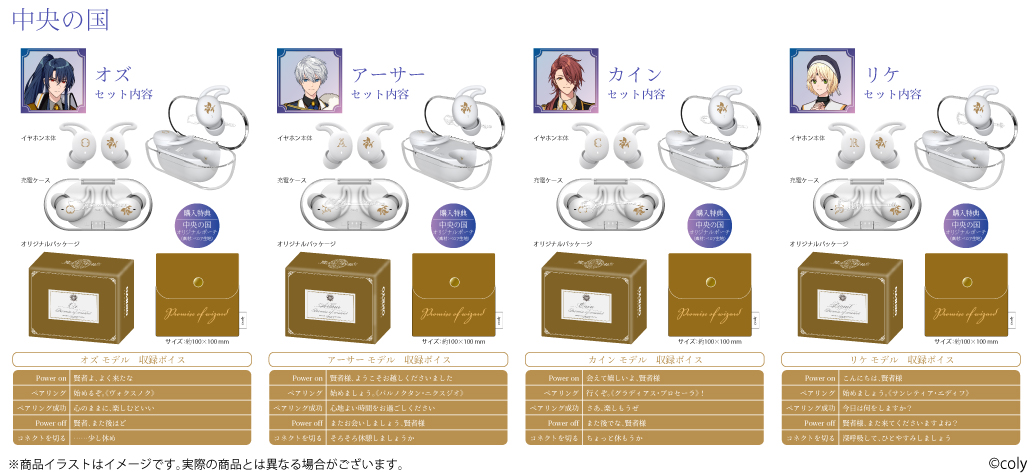 「CP-TWS01D」と、株式会社colyが運営する今年11月にリリース5周年となるスマートフォン向けアプリゲーム『魔法使いの約束』から「中央の国」「東の国」全8キャラクターとのコラボレーションモデルの受注販売を致します。
