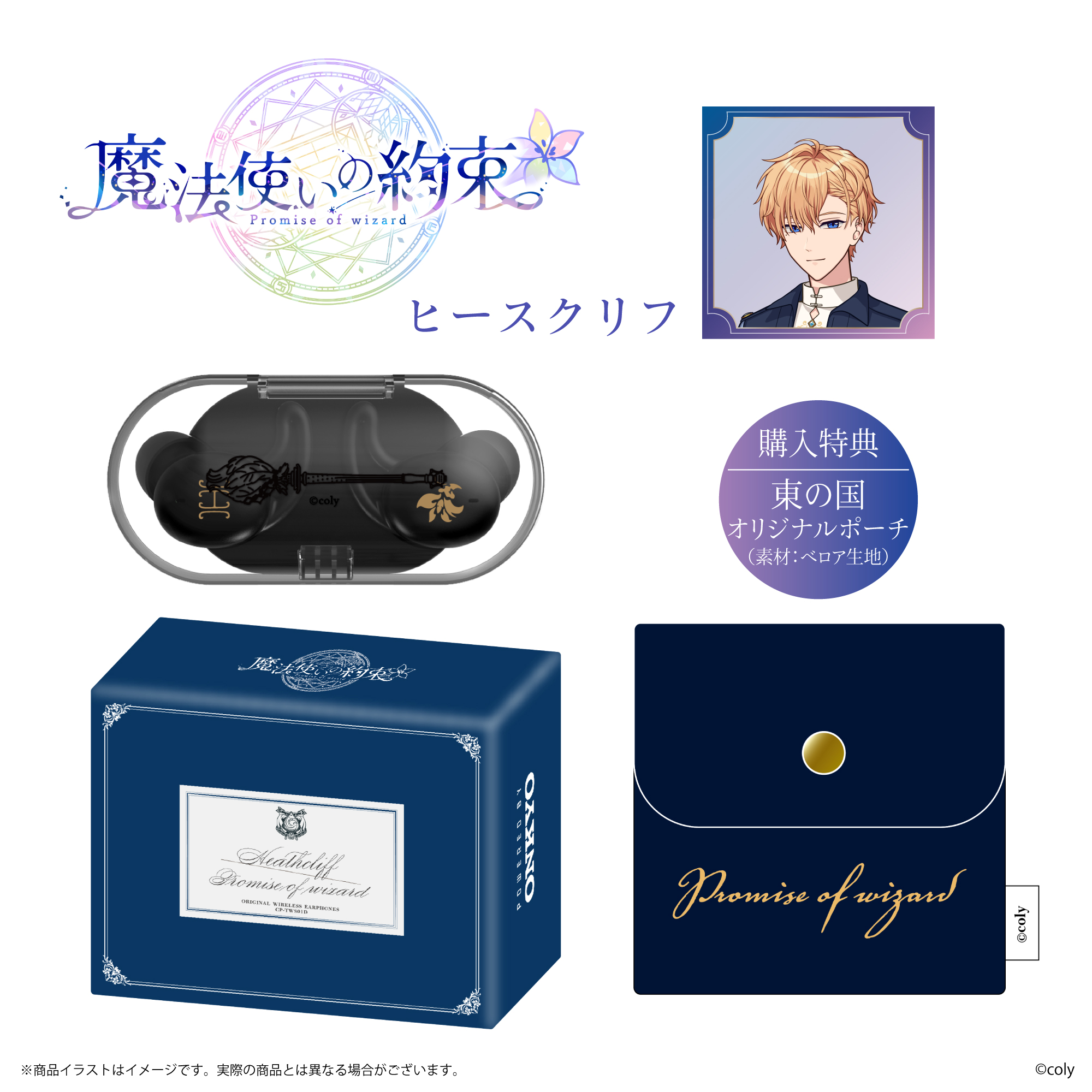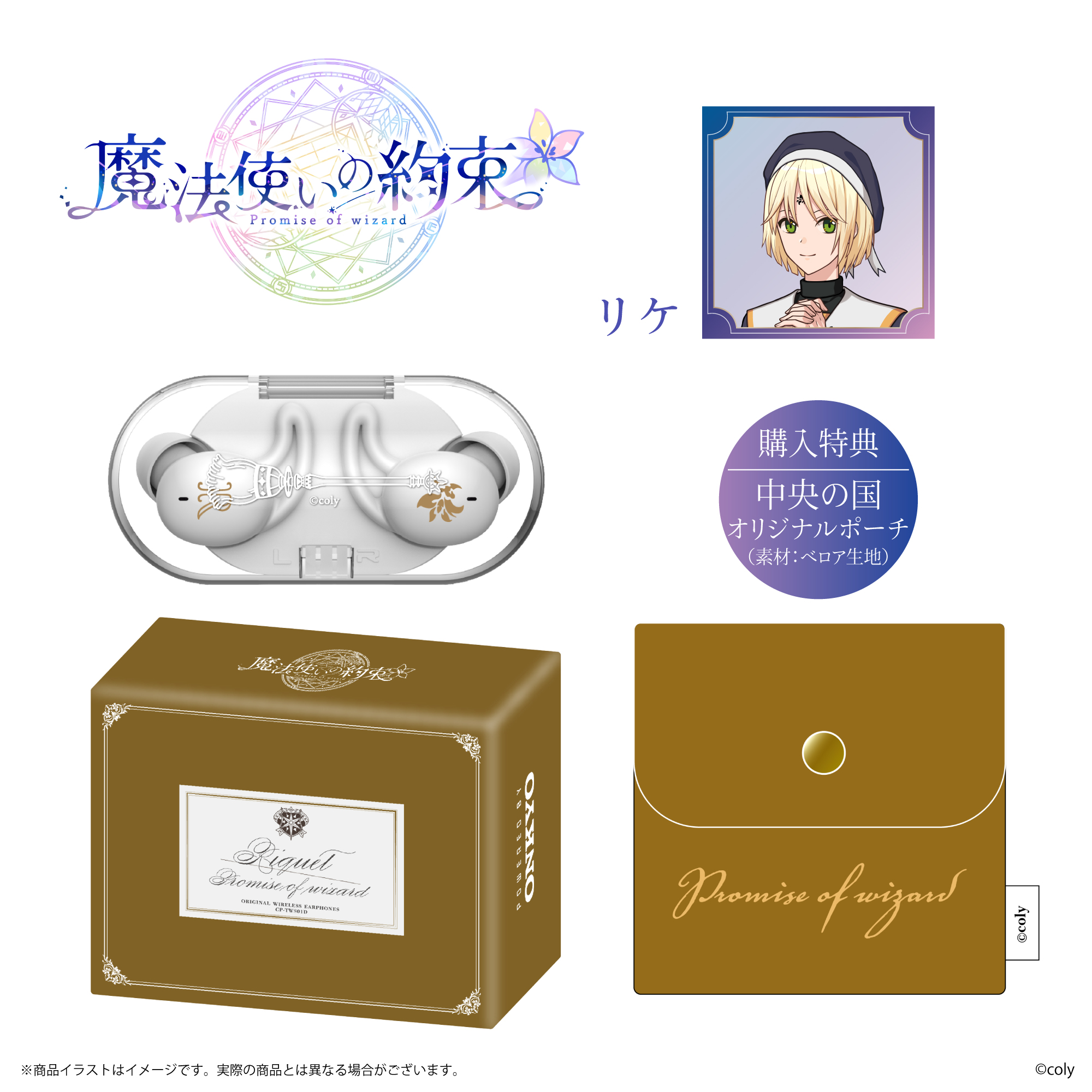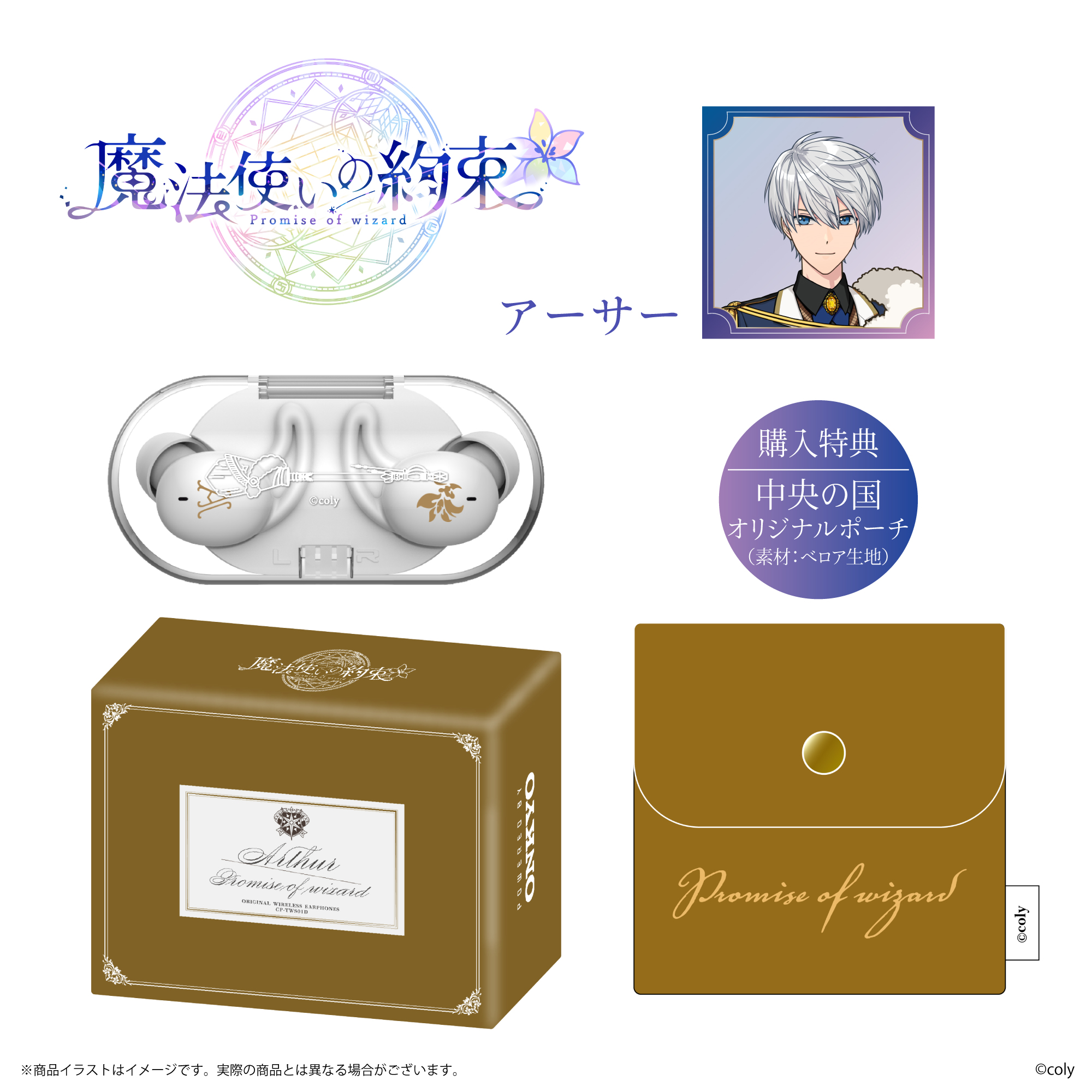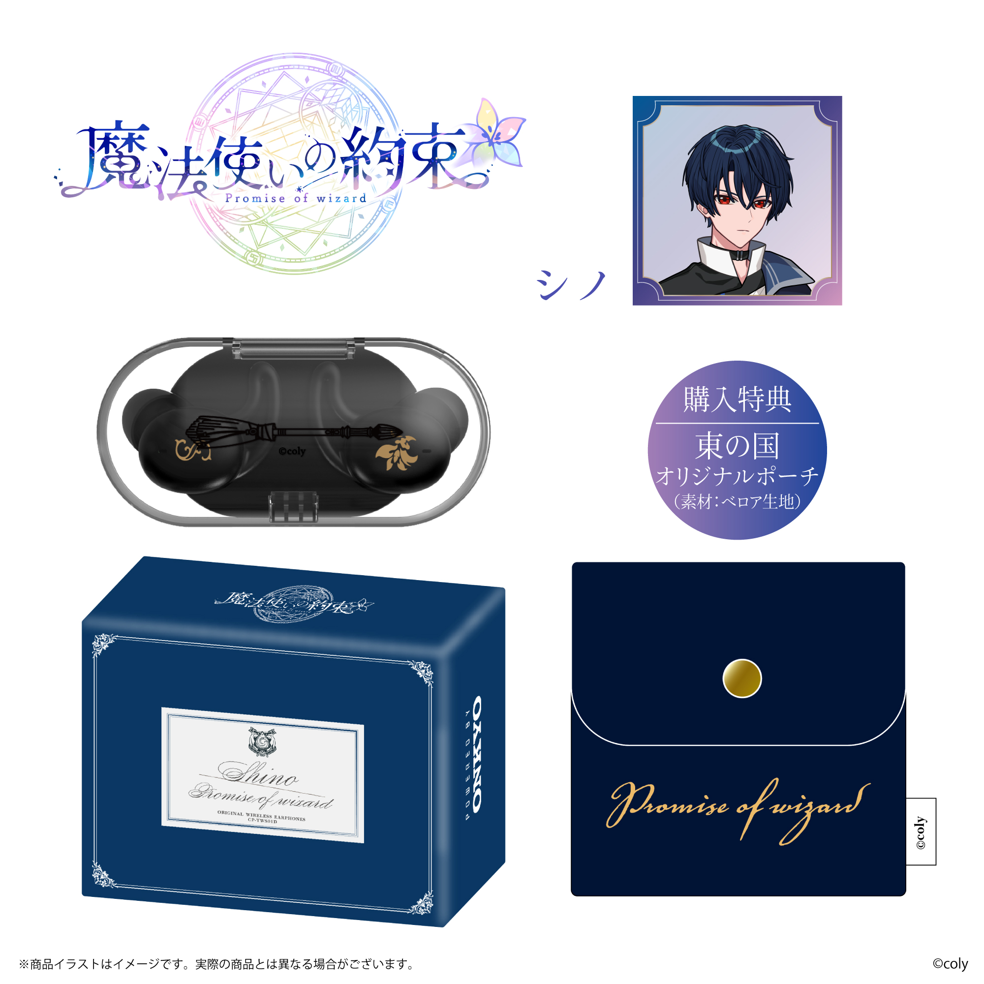「CP-TWS01D」と、株式会社colyが運営する今年11月にリリース5周年となるスマートフォン向けアプリゲーム『魔法使いの約束』から「中央の国」「東の国」全8キャラクターとのコラボレーションモデルの受注販売を致します。