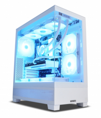 このたび販売を開始する製品は、ピラーレスデザインケースの「GPLシリーズ」から、AMD B650チップセットとAMD Ryzenプロセッサー搭載のゲーミングPCです。ケースは白色と黒色の2色からお選びいただけ、水冷CPUクーラーやグラフィックスカード、電源、ケーブルなどの各パーツも、ケースの色に合わせた統一感のあるビジュアルとなっています。ライティングは全てソフトウェアで制御可能で、6基のケースファンと左側面のRGB-LEDラインに加え、標準搭載の光るメモリ(32GB)と光る水冷CPUクーラーの輝きを、広々としたガラスパネル越しに堪能できます。
