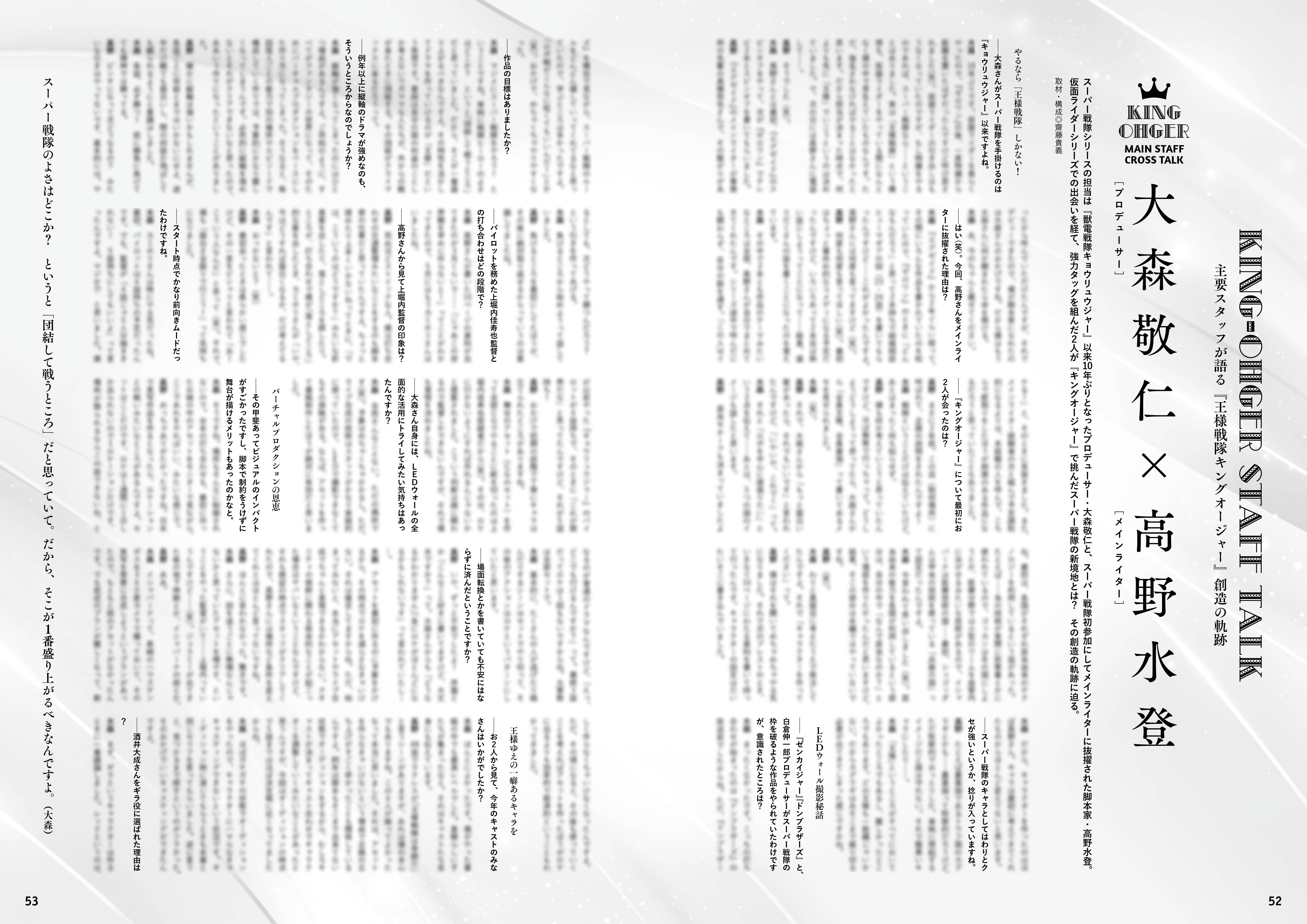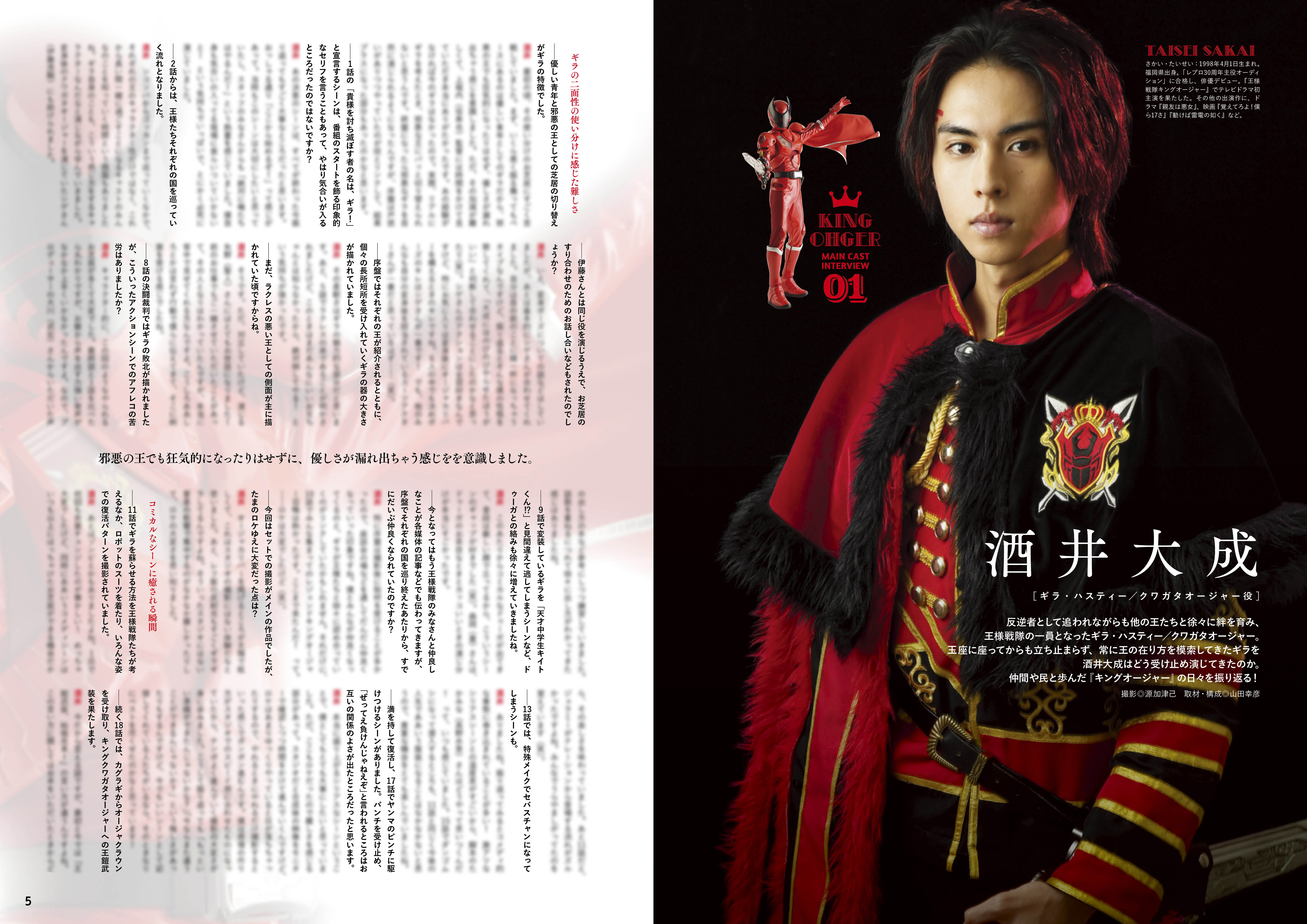 7人の王様を演じたレギュラーキャストはもちろん、スーツアクターやプロデューサー、脚本家、監督、デザイナーといったスタッフ陣へのインタビューを掲載!『王様戦隊キングオージャー』の一年間を徹底的に掘り下げる永久保存版です!