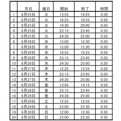 ●放送回数・・・各放送局にて20回ずつ放送(下記参照)