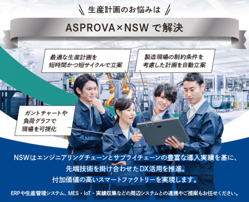 NSW株式会社様は、生産スケジューラ「Asprova」の販売や導入支援、運用サポートにおいて優れた実績がある、重要なビジネスパートナー様です。